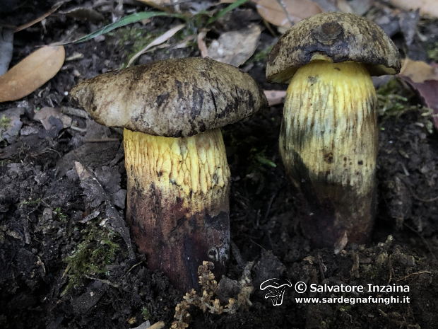Determinazione effettuata sulla base dei caratteri macroscopici. Per il gambo subliscio e la mancanza del grossolano reticolo a costolature incrociate che piu' tipicamente lo caratterizza, si tratta verosimilmente ( ndr. seppure descritta in letteratura) di una forma o varieta' piuttosto atipica di Xerocomus ichnusanus. Come tale puo' essere confuso per esempio con Boletus pulverulentus Opat il quale ha gambo liscio ma carne in sezione rapidamente virante al blu intenso (vedi scheda).