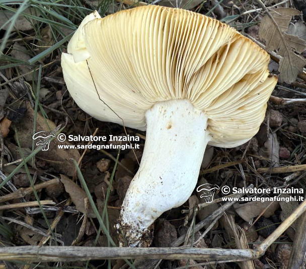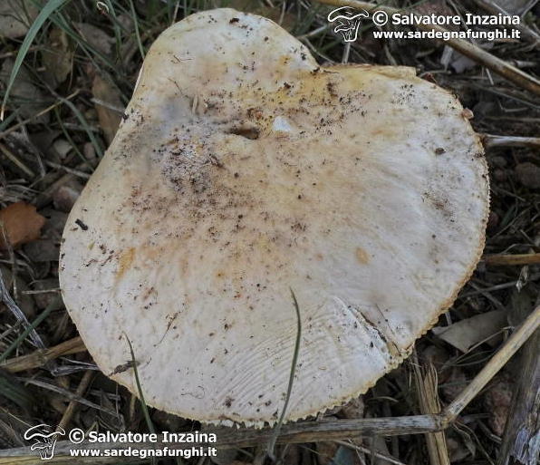 Singolo carpoforo di medie dimensioni (7 cm) trovato in bosco rado di lecci.Cappello nel presente ritrovamento color crema, crema-giallino al centro, anche variegato di tonalita' grigiastre, piu' pallido e decolorato verso il bordo. Lamelle fitte, crema. Gambo robusto,bianco.Carne soda, bianca,immutabile al taglio.Sapore leggermente piccantino nelle lamelle. Odore leggero, impercettibile.