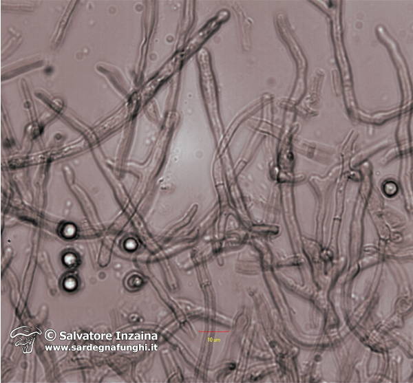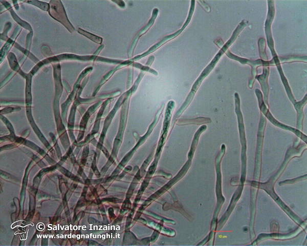 Dermatocistidi cilindracei, larghi 3-4.5 µm, non settati, apici talvolta appena piu'larghi o bottonuti.