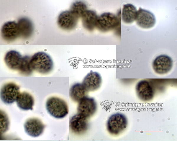 Spore subovoidi, 6.5-7.5 x 5-6 µm,finemente verrucose, con connessioni sottili formanti un reticolo largamente interrotto e con rare maglie chiuse.
