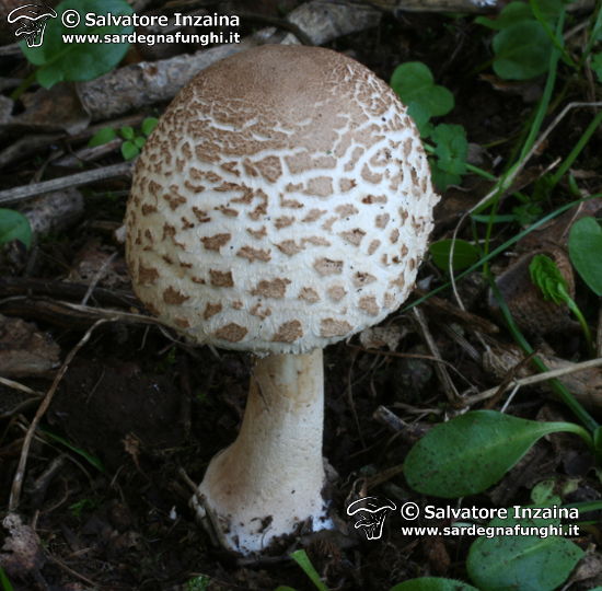 Cappello 5-9 (10) cm convesso, poi spianato e disteso, leggermente umbonato; cuticola progressivamente dissociata dal centro alla periferia in squamule brunastre disposte in maniera piu' o meno concentrica.